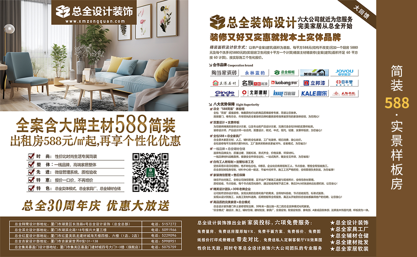總?cè)O(shè)計(jì)為您提供家裝設(shè)計(jì)施工一站式解決方案,服務(wù)熱線:0592-5155252