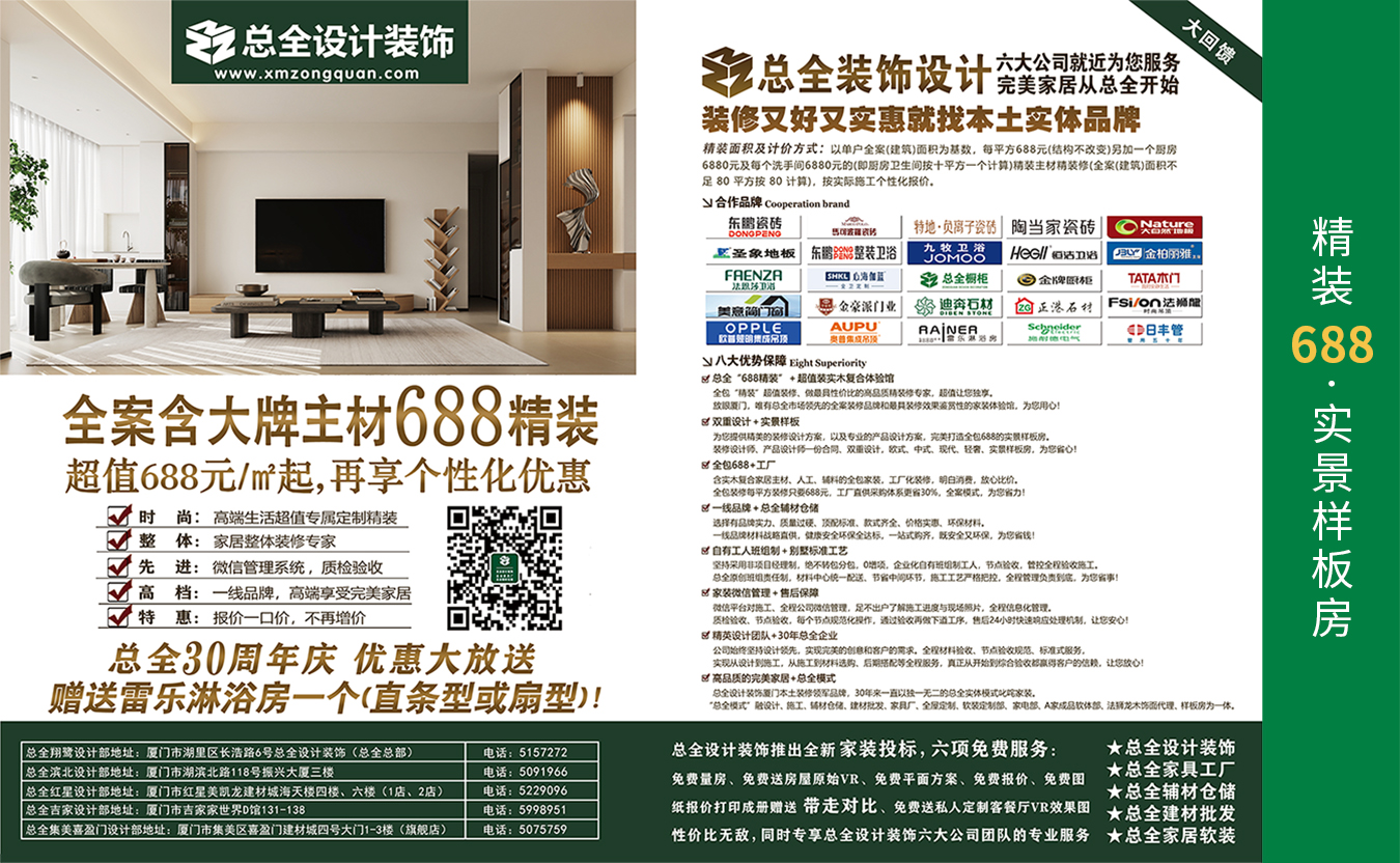 總?cè)O(shè)計(jì)為您提供家裝設(shè)計(jì)施工一站式解決方案,服務(wù)熱線:0592-5155252