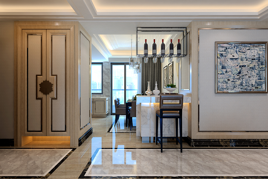 本案以現(xiàn)代中式的設計風格為主調,在總體布局方面,盡量滿足四口之家生活上的需求,主要裝修材料為原木色木作飾面,以黑色不銹鋼的線條裝飾,搭配米白色硬包,創(chuàng)造一個簡約又不古板的現(xiàn)代中式風格。